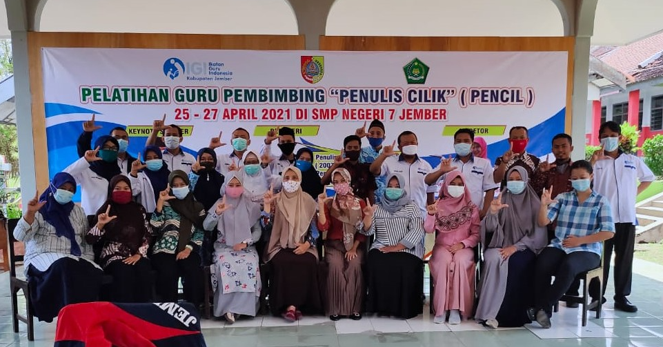 JEMBER, IGI.OR.ID- Tak pernah berhenti gerakan membumikan literasi, ini terus digalakkan oleh IGI Kabupaten Jember. Potensi besar untuk mengembangkan literasi diantaranya adalah kepada profesi Guru. Untuk mendorong geliat literasi ini, IGI Kabupaten Jember mengadakan Pelatihan Guru Pembimbing Penulis Cilik. Kegiatan ini dilaksanakan pada tanggal 25-27 April 2021 di Aula SMPN 7 Jember.