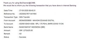 Resi Transfer Sumbangan Ke BNPB Covid-19