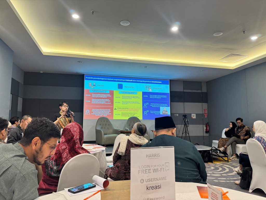 Kegiatan diseminasi dilaksanakan secara kolaboratif bersama Pusat Studi Pendidikan dan Kebijakan (PSPK) sebagai konsultan penelitian, dengan guru Indonesia hadir di tengah forum sebagai penggerak utama perubahan.