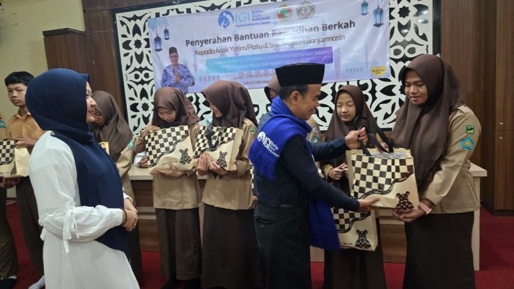 Banjarmasin, IGI.OR.ID– Semangat berbagi di bulan suci Ramadan kembali diwujudkan melalui kegiatan sosial yang dilaksanakan di Edotel SMK Negeri 4 Banjarmasin bertepatan dengan 24 Ramadhan 1447 H. Kegiatan bertajuk Penyerahan Bantuan Ramadan Berkah ini merupakan kerja sama antara Ikatan Guru Indonesia (IGI) Provinsi Kalimantan Selatan dengan Koperasi Siswa SMK Negeri 4 Banjarmasin. Sebanyak 40 anak yatim piatu menerima bantuan dalam kegiatan yang berlangsung pukul 09.00–10.00 WITA, Jumat (13/3/2026).
