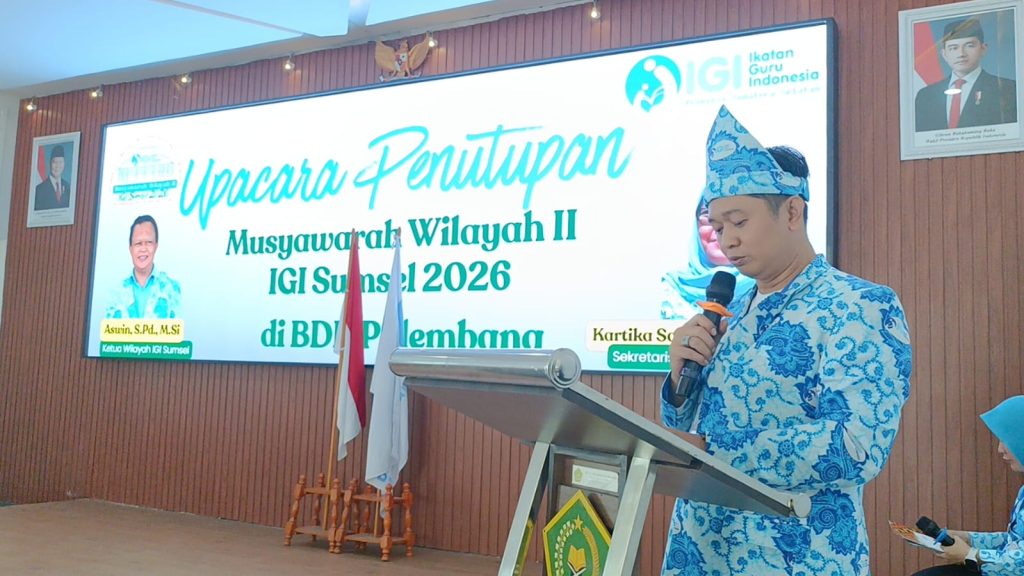Palembang, IGI.OR.ID- Ikatan Guru Indonesia (IGI) Provinsi Sumatera Selatan sukses menyelenggarakan Musyawarah Wilayah (Muswil) II Tahun 2026 yang berlangsung selama tiga hari, 14–16 Februari 2026, bertempat di Balai Diklat Keagamaan (BDK) Kemenag Sumsel, Palembang. Mengusung tema “IGI Jaya, Guru Berdaya, Wujudkan Pendidikan untuk Semua,” kegiatan ini menjadi momentum konsolidasi dan penguatan peran guru dalam memajukan pendidikan di Sumatera Selatan.